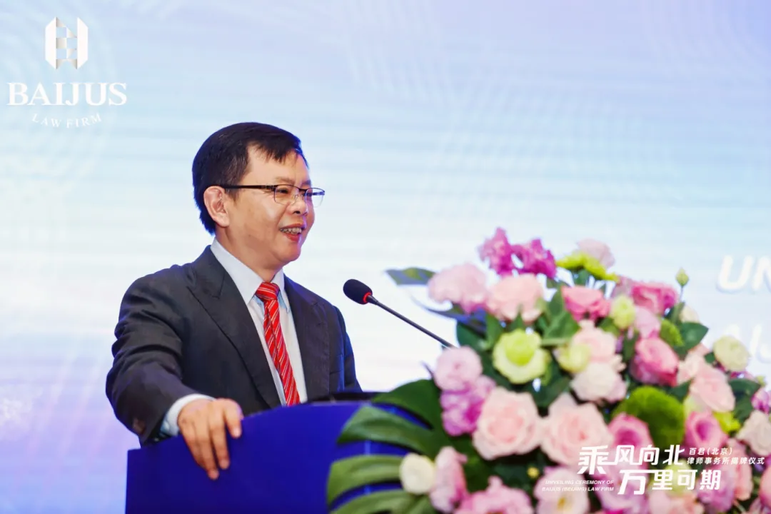 最高人民检察院原副检察长、西南政法大学北京校友会会长张穹发表致辞,向百君北京所的开业表示由衷祝贺。他介绍道,我国共有律所3.86万家,从规模化程度来看,律师100人以上的律所共500家,仅占1.29%,可见百君已经站在了行业的前列,成为了行业的“领头羊”。2025年,北京律师行业的纳税总额有望突破50亿元,形成30家在国内外具有较高知名度的涉外示范律师事务所,并建设5家以上国际一流的律师事务所。在这样的大背景下,百君北京所的开业恰逢其时。希望百君抓住政策红利,积极融入“走出去”的大潮,沿着“一带一路”倡议的指引,不断拓展业务范围和服务能力,以更加开放的姿态,迎接各种机遇与挑战。“百树成林,百君成业”,意味着只有将众多百君人的才华和能力汇集在一起时,才能实现宏伟的目标。规模化不是律所终极目标,当潮水退去,能够让律所立足的,是资源整合能力和专业实力,祝愿百君不断吸收业界英才,始终保持对法律服务的高质量追求,持续发展业务特色,以自身的“硬功夫”和“软实力”在这时代浪潮中乘风破浪,勇往直前。